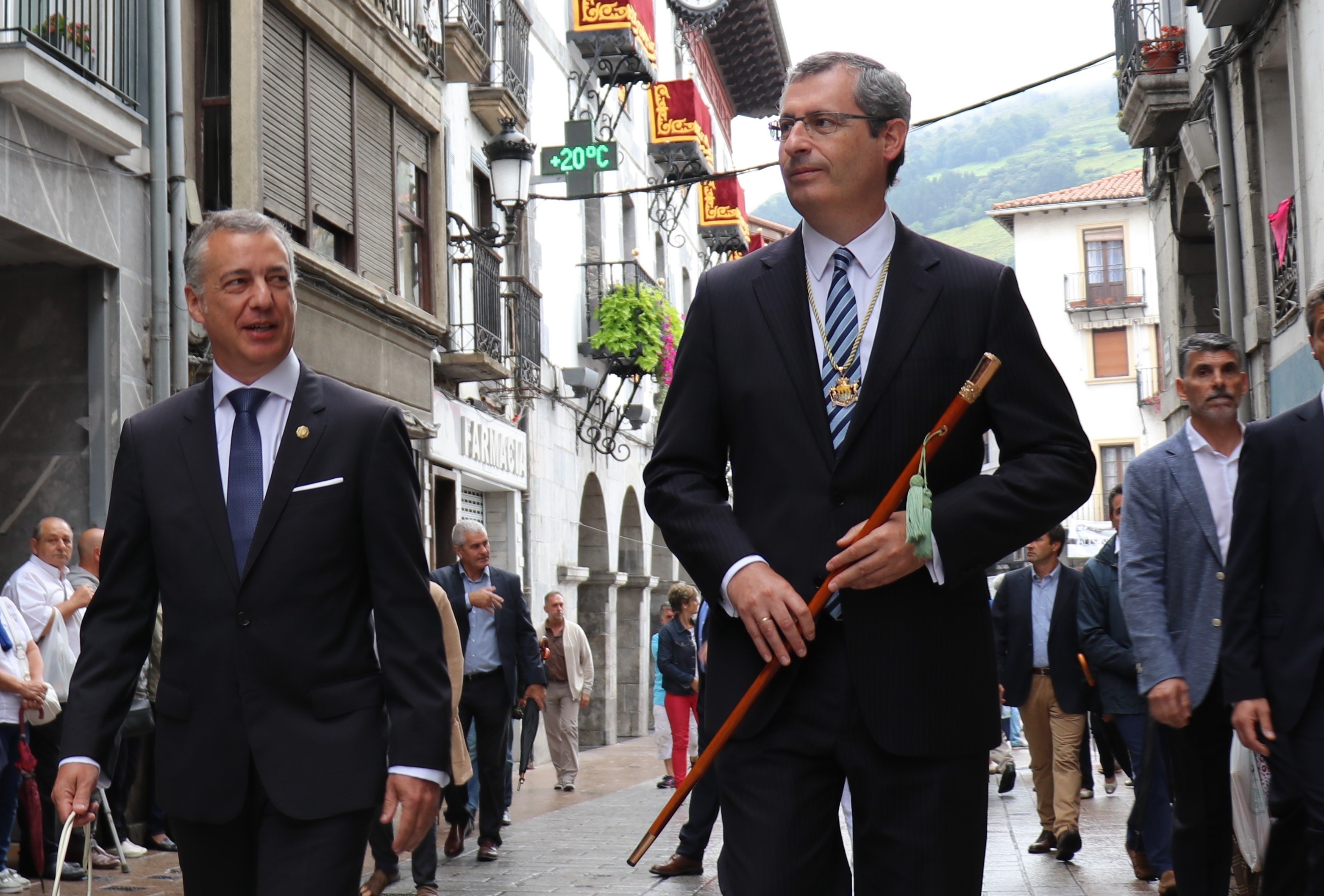 La recepción oficial que frente al Ayuntamiento de la localidad se les ha ofrecido a las autoridades ha dado comienzo a los actos. Los representantes políticos, en procesión, han recorrido las calles de la villa, para posteriormente acudir a la Basílica de Loiola, donde el donde el Obispo de San Sebastián Jose Ignacio Munilla ha oficiado la misa mayor.