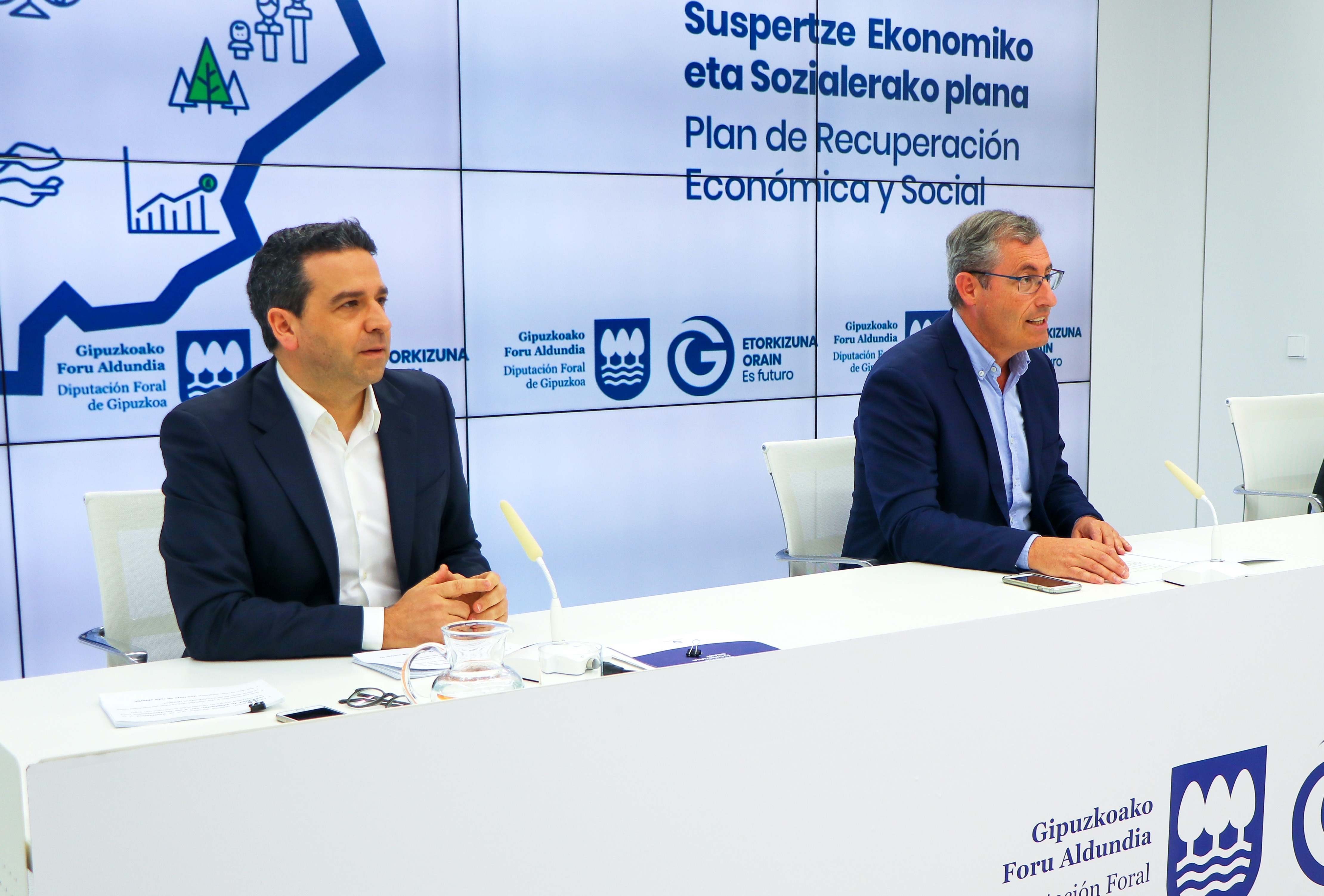 Olano ha dado cuenta de los objetivos del Plan en una comparecencia junto al diputado de Medio Ambiente y Obras Hidraúlicas Jose Ignacio Asensio, y el diputado de Promoción Económica, Imanol Lasa. Ha apostado por preservar y potenciar “los valores y las formas de hacer que han permitido a Gipuzkoa alcanzar unos niveles de prosperidad, cohesión social y bienestar, como la mejor garantía para superar este desafío. Es momento de hacer, de poner en práctica, más que nunca, la colaboración, la innovación y el trabajo bien hecho”. El Diputado General ha subrayado que el Plan priorizará “la generación y el mantenimiento del empleo de calidad, a través de proyectos empresariales competitivos y sostenibles -económica, social y medioambientalmente- y humanos, sin dejar a nadie atrás, porque una sociedad cohesionada es la base de una sociedad competitiva, más si cabe en tiempos tan difíciles como los actuales”.
