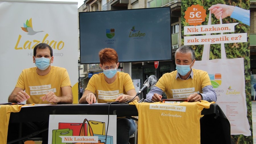 El Ayuntamiento de Lazkao dio continuidad el pasado 19 de octubre a la campaña de bonos 'Nik Lazkaon, zuk zergatik ez' para reactivar la economía de la localidad: se pusieron a la venta un total de 1.500 bonos nuevos. Se agotaron en 3 días. En consecuencia, se decidió ampliar el lote con 1.000 bonos más y se pusieron a la venta el 2 de noviembre. Ya se han agotado. Al precio de 20 euros los bonos tienen un valor adquisitivo de 30 euros y se pueden canjear en 61 comercios de la localidad hasta el 28 de noviembre.