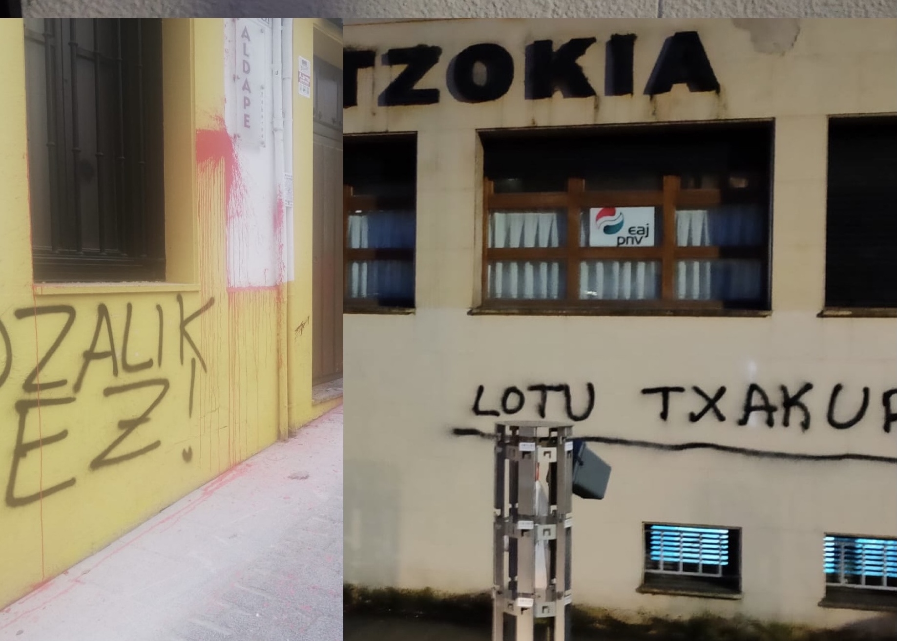 EAJ-PNV denuncia que, una vez más, desconocidos han realizado pintadas en las fachadas de los batzokis de Arrasate y Oñati.