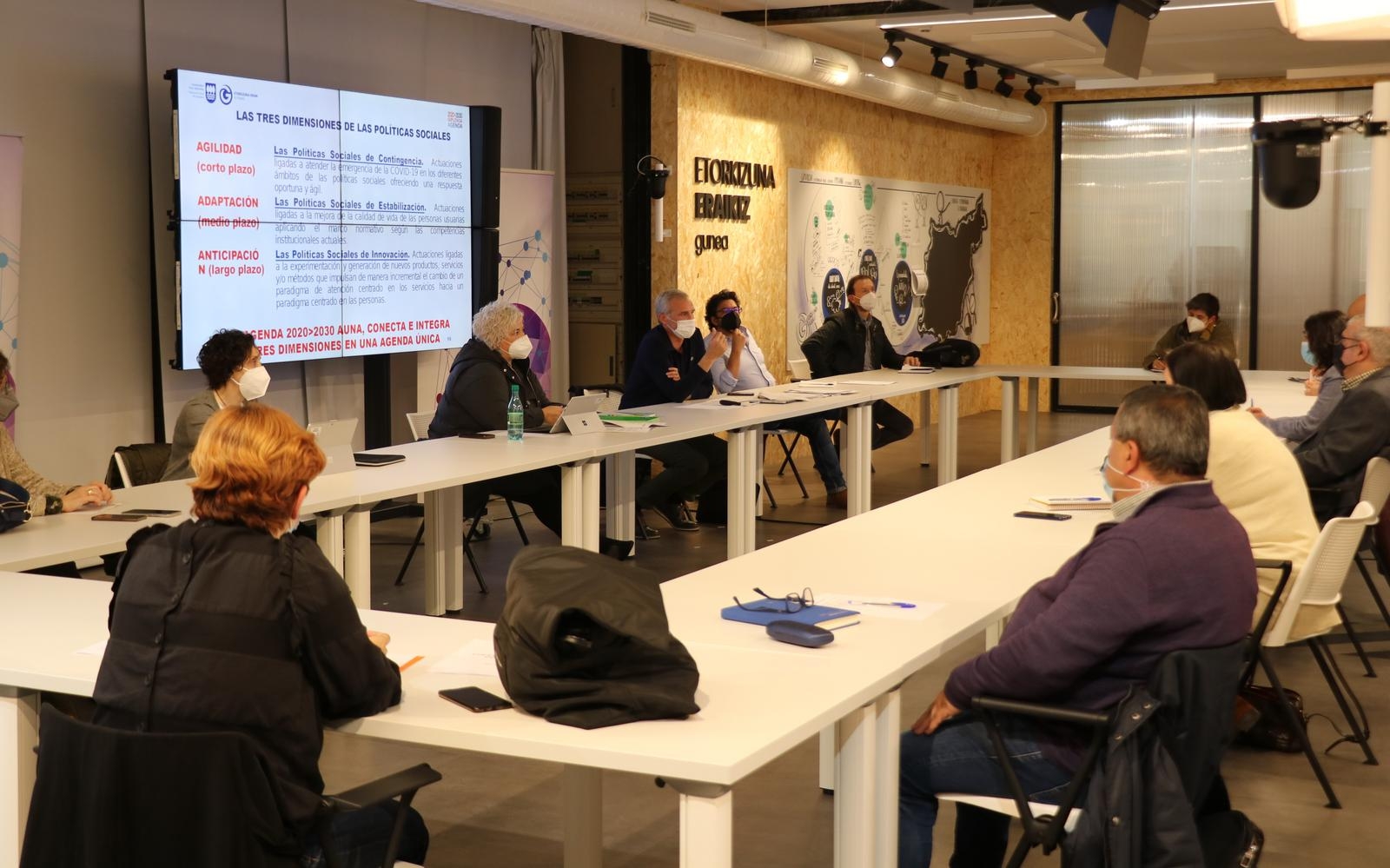 La Agenda Gipuzkoa 20>30 busca dibujar un territorio con unas políticas sociales compartidas, capaces de configurar un nuevo modelo de atención y cuidados. Así se lo ha expuesto esta tarde la diputada de Políticas Sociales, Maite Peña, a los y las familiares de diversos recursos sociales del territorio. Tras su presentación en las Juntas Generales de Gipuzkoa el pasado 26 de abril, este es primer grupo de contraste con el que se compartirá la estrategia Agenda Gipuzkoa 20>30, y tras él, los y las responsables del Departamento de Políticas Sociales se reunirán con las personas usuarias de diferentes servicios sociales, profesionales, gestoras de los centros, personas expertas, consejos territoriales, sindicatos, asociaciones empresariales y otras instituciones y entidades públicas.