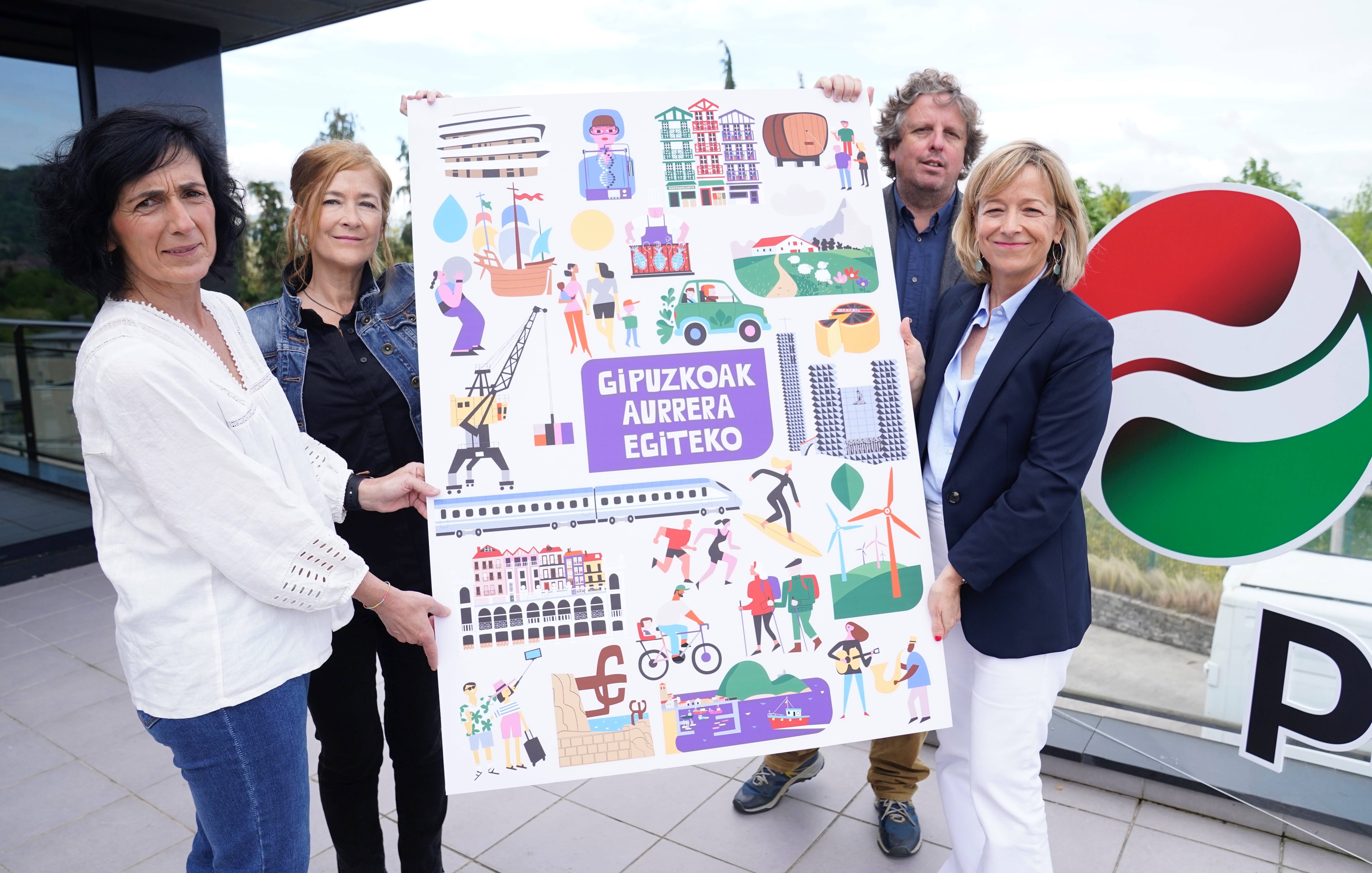 Eider Mendoza Larrañaga, candidata de EAJ-PNV a diputada general de Gipuzkoa, ha puesto hoy el foco en la importancia de las próximas elecciones municipales y forales del 28 de mayo. A su juicio, en Gipuzkoa “está en juego avanzar con decisión hacia el futuro, desde la colaboración, o elegir un camino incierto que en el pasado nos llevó a la parálisis”. La candidata jeltzale ha defendido esta idea en el desayuno informativo que ha llevado a cabo con diferentes medios de comunicación, en el que ha presentado los ejes de su propuesta de cara a los comicios, así como un conjunto de ilustraciones que representan “la Gipuzkoa activa y en marcha que queremos seguir construyendo”. Junto a ella, han comparecido las cabezas de lista de las circunscripciones Olatz Peon (Oria), Xabier Ezeizabarrena (Donostialdea) y María Eugenia Arrizabalaga (Deba-Urola).