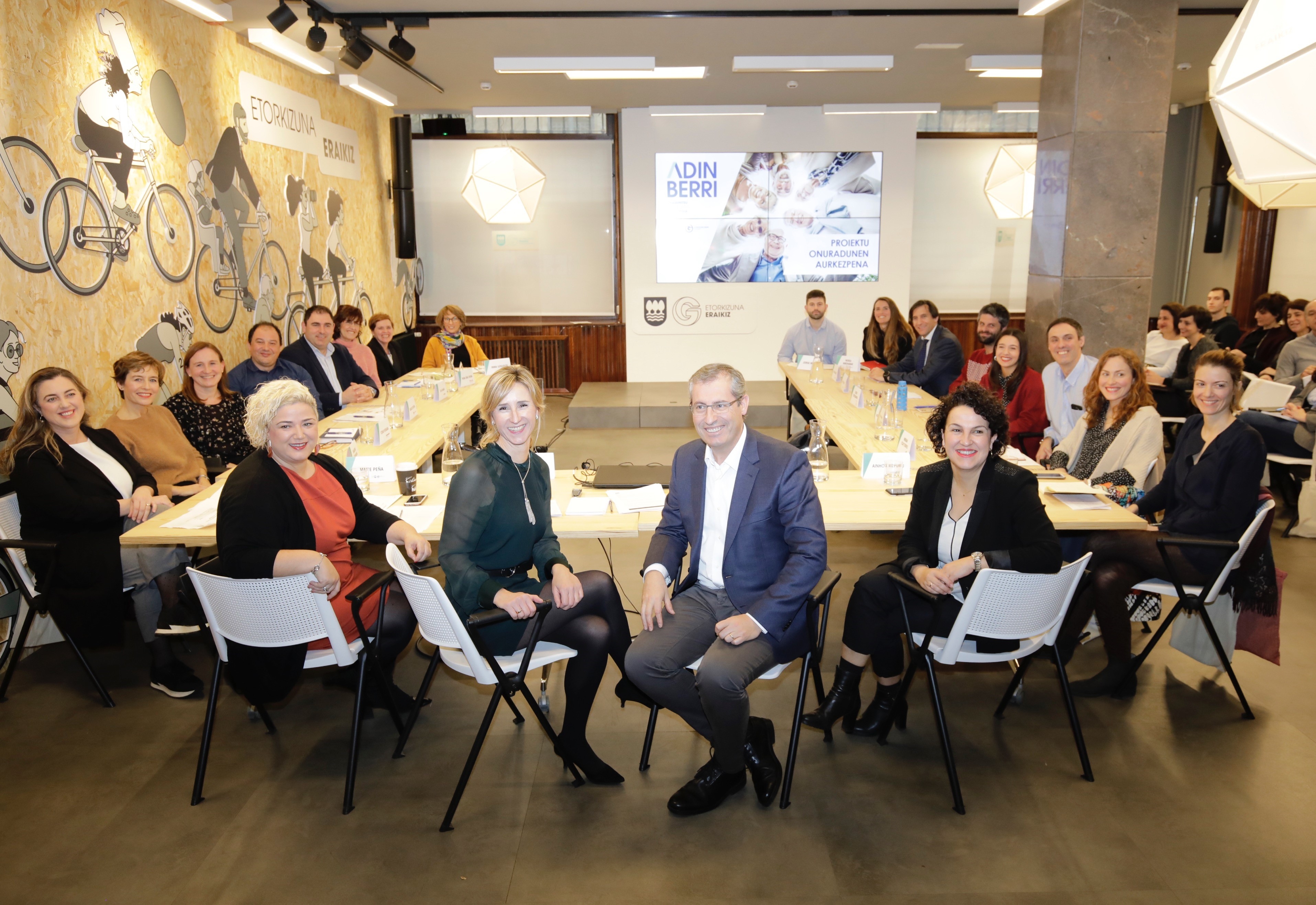 Diputatu nagusiak topaketa batean parte hartu du gaur; bertan, Adinberri dirulaguntzen bigarren deialdiaren esparruan, datorren urtean zahartze osasungarrian, sistema soziosanitarioaren bikaintasunean eta arlo horretako industriaren lehiakortasunean eragina izan dezaketen proiektu berritzaileak garatuko dituzten eragileekin bildu da. Ekitaldia Etorkizuna Eraikiz Gunean egin da, eta ekimen horien atzean dauden enpresen eta elkarteen ordezkariak bildu dira bertan. Maite Peña Gizarte Politiketako foru diputatua, Ainhoa Aizpuru Proiektu Estrategikoetako foru diputatua eta Rakel San Sebastian Adinberriko zuzendaria ere bertan izan dira.