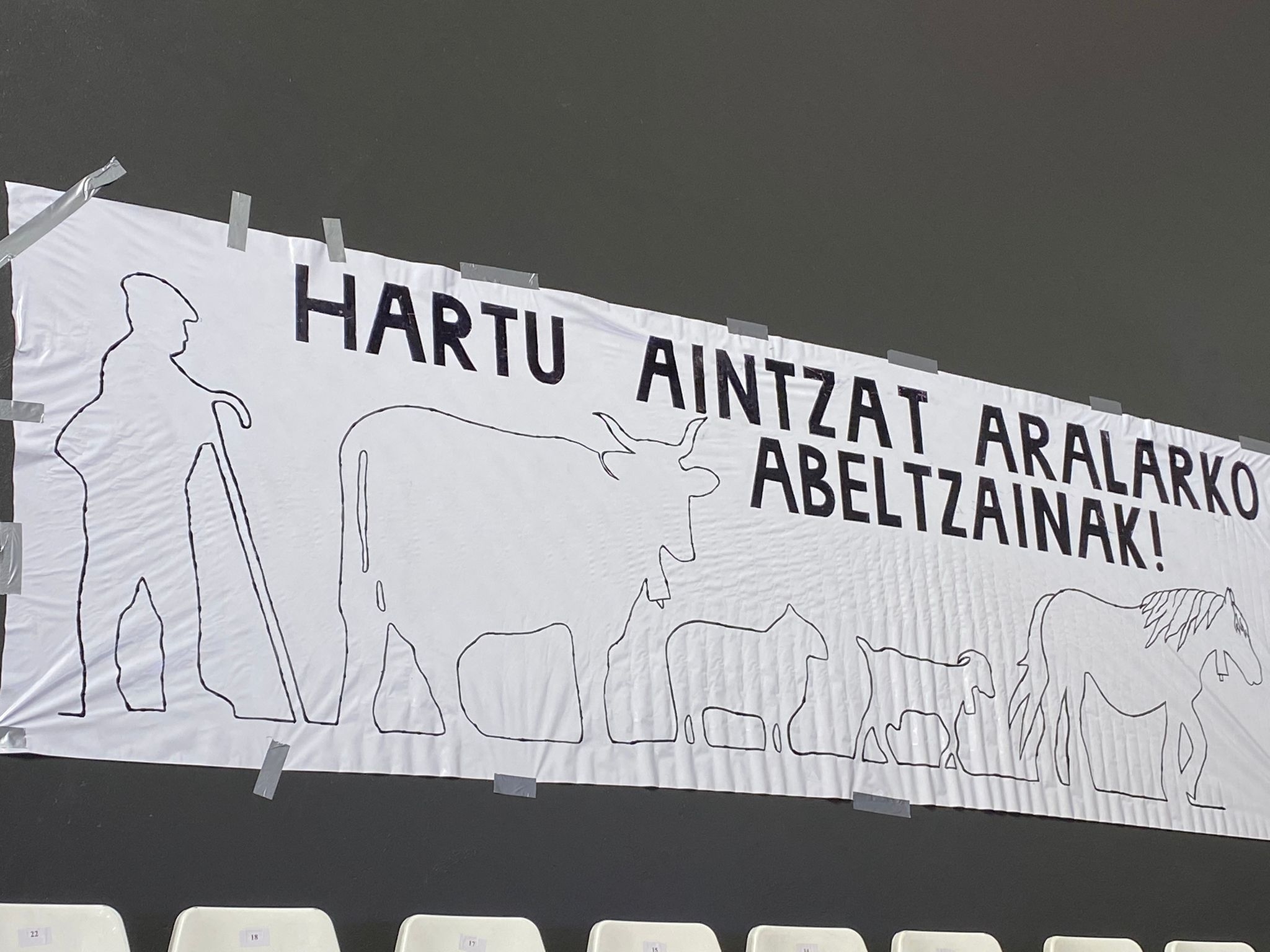 Larria, oso neurgailu ezberdina erabili zuelako EH Bilduren Udalak toki eta une berean: abeltzainen pankartak kentzen zituen bitartean, ez zuen inolako eragozpenik, epaimahaiaren lana etenda, presoen aldeko pankartak zeramatzatenei alfonbra gorria jartzeko.